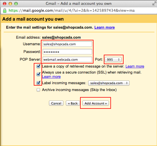 Step 2Go to tab: ACCOUNT AND IMPORT then click on ADD A POP3 MAIL ACCOUNT YOU OWN